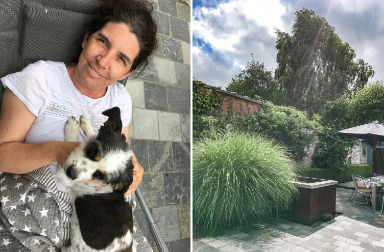 Dieser Friede und diese Ruhe…nur die Birke, der Brunnen, der Hund, die Koi und ein Kaffee. Ich spüre in solchen Momenten eine tiefe Dankbarkeit.