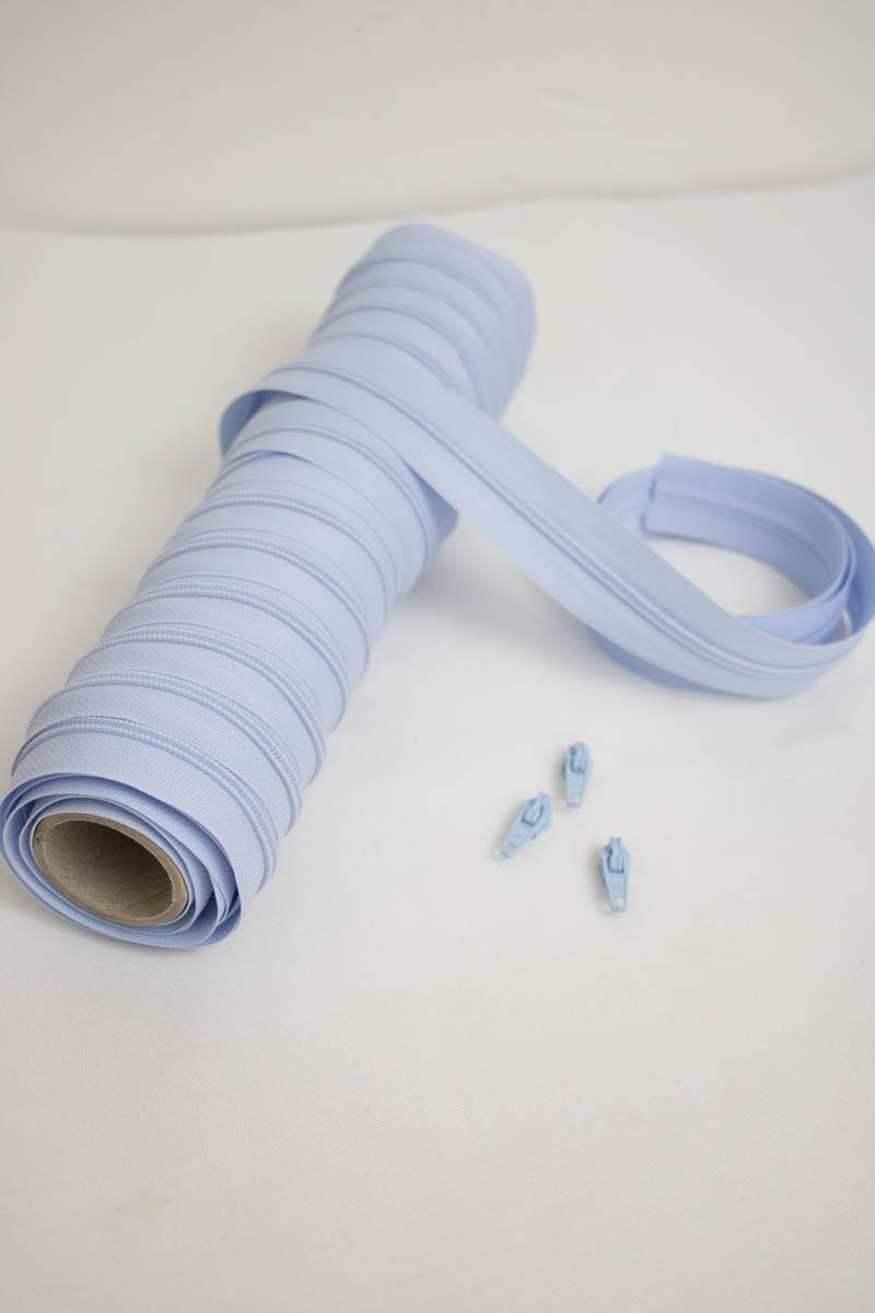 Stoff Baumwolle Capri hellblau mit weißen großen Punkten von Westfalenstoffe
