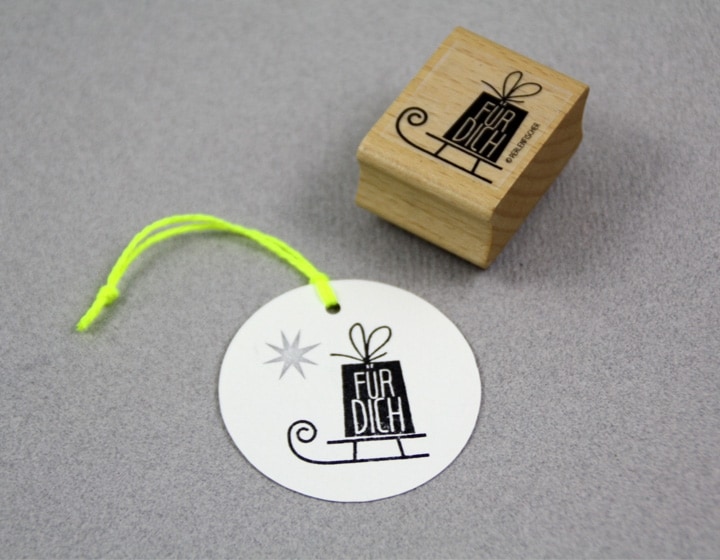 Stempel Schlitten mit Geschenk von Perlenfischer