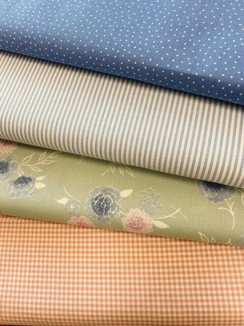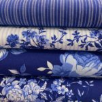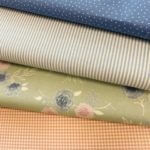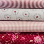 Die Stoffstreifen sind in 13 cm Höhe bereits passend zugeschnitten, so daß Du nur noch einzelne Quadrate ausschneiden mußt. Natürlich kannst du das auch gerne mit eigenen Stoffen ergänzen, mixen und Matchen… in meiner Tasche sind Stoffe von Kinderkleidchen meiner Kinder dabei…Den Streifen für das Binding schneiden wir bereits auf 7 cm für Dich zu.