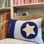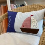 Wunderschönes Namenskissen aus den tollen Baumwollstoffen von Westfalenstoffe. Individuell angefertig... mit traumhaften Motiven...ob Boot oder Pferd...Herz, Regenbogen oder Stern... alles ist möglich. Der Name wird in Wunschfarbe gestickt. Wähle aus den tollen Stoffen, Motiven, Schriftarten und Schriftfarben.... ob mit oder ohne Innenkissen....
