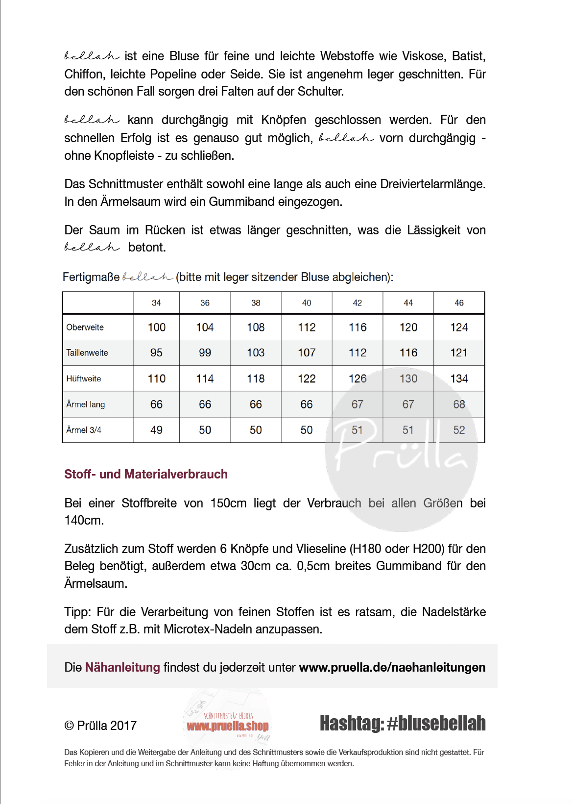 Schnittmuster Bluse bellah von Prülla Bewertungen