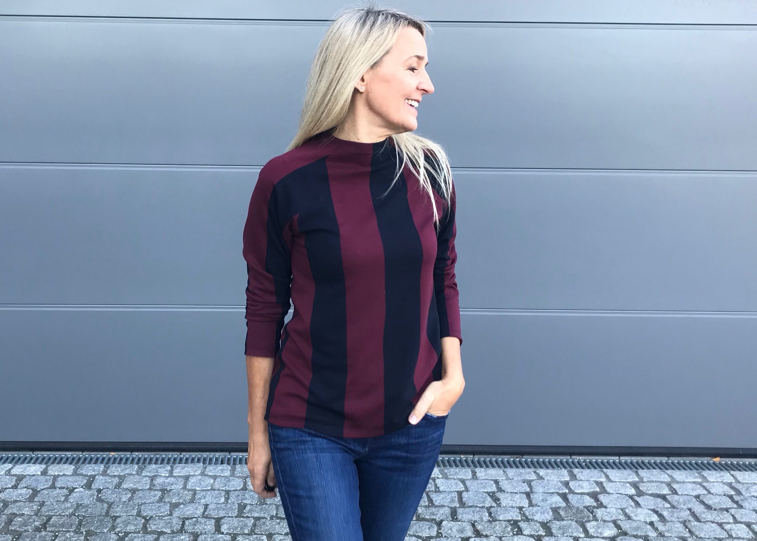 Ein zeitloses Stehkragen-Oberteil. Du benötigst nur wenig Näherfahrung.