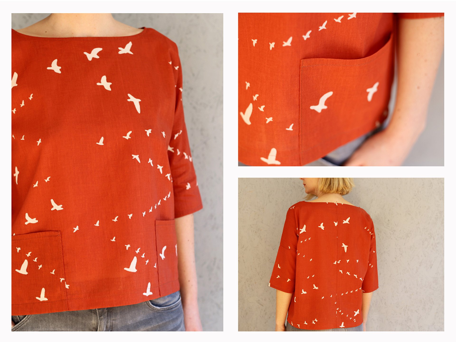 Ein wunderbares Papierschnittmuster Frau Aiko für eine kurze Bluse mit Taschen von Studio Schnittreif.