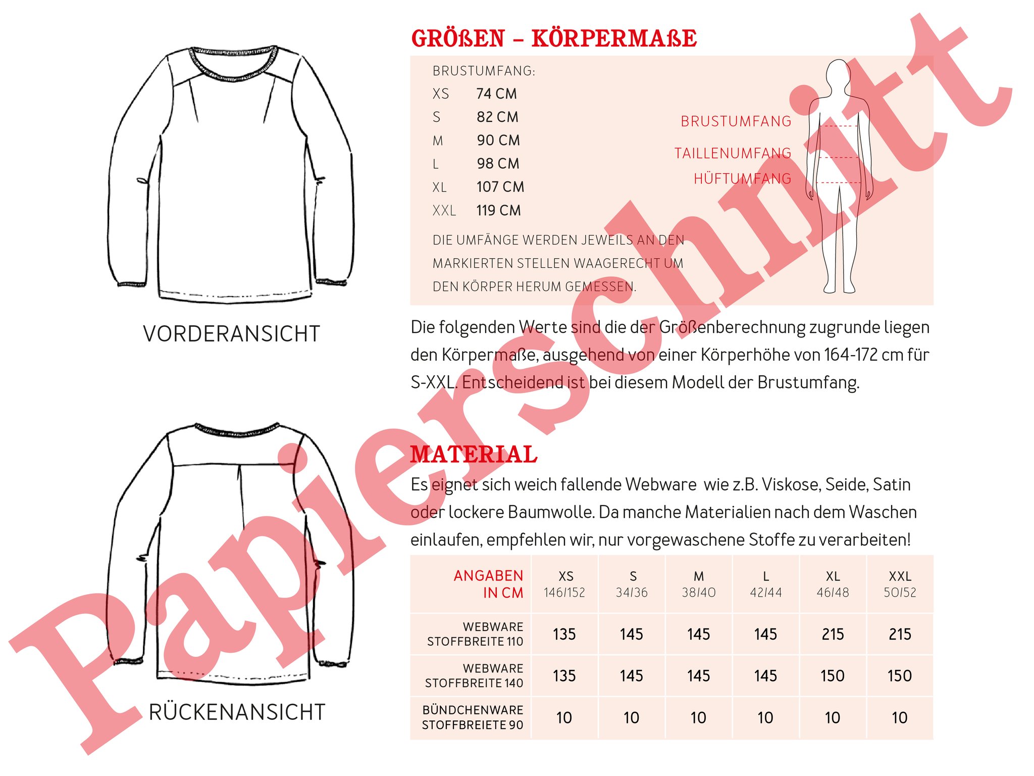 SCHNITTMUSTERBOGEN auf Papier mit farbig gedruckter Fotonähanleitung