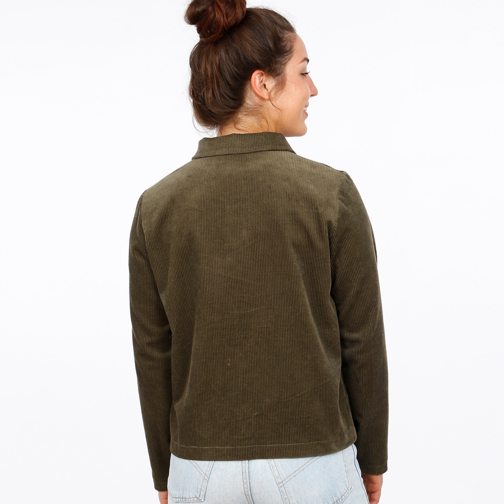 FRAU DITA ist eine coole Jacke im Workerstyle. Kurz und gerade geschnitten, mit vier kantigen aufgesetzten Taschen und einem lässigen Kragen ist FRAU DITA ein must-have für Deine Übergangsgarderobe. Der Ausschnitt wird mit Beleg verarbeitet, verschlossen wird FRAU DITA mit Druckknöpfen.