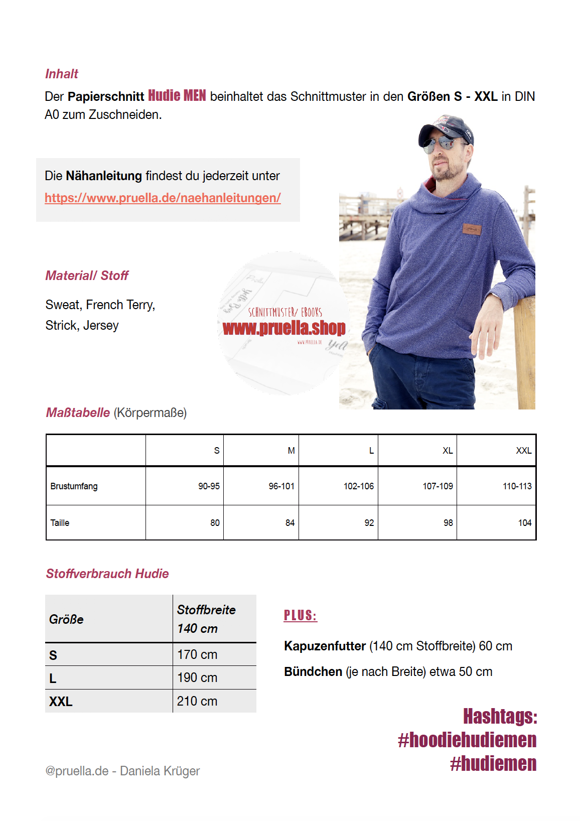 Schnittmuster Hoodie Hudie MEN von Prülla Bewertungen