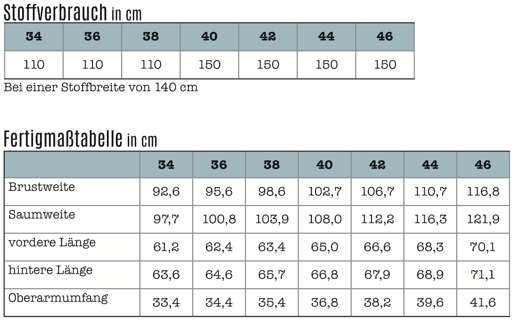 Zum Nähen empfehlen wir nicht dehnbare Webware wie z.B. Leinen, Tencel...