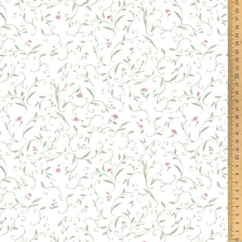 Lassen Sie sich von der sanften Eleganz dieses Baumwollstoffes verzaubern! Der Stoff Zarte Ranken von Carola Gutwill zeigt feine Flora in einem dezenten Grünton, die sich mit rosa Blüten und feinen Blättern zu einem filigranen Reigen winden. Die liebevoll gezeichneten Details verleihen dem Stoff eine subtile, aber ausdrucksstarke Schönheit, die an einen verträumten Garten erinnert.Dieser Stoff ist perfekt für all jene, die florale Muster und dezente Farben schätzen. Ob für luftige Kinderkleidung, elegante Heimtextilien, bezaubernde Kissen oder filigrane Taschen – der Stoff eignet sich für eine Vielzahl kreativer Projekte und bringt eine harmonische, ruhige Atmosphäre in jedes Nähvorhaben. Der hochwertige Baumwollstoff ist angenehm weich und lässt sich wunderbar verarbeiten, sodass er für Anfänger wie auch erfahrene Näherinnen bestens geeignet ist.